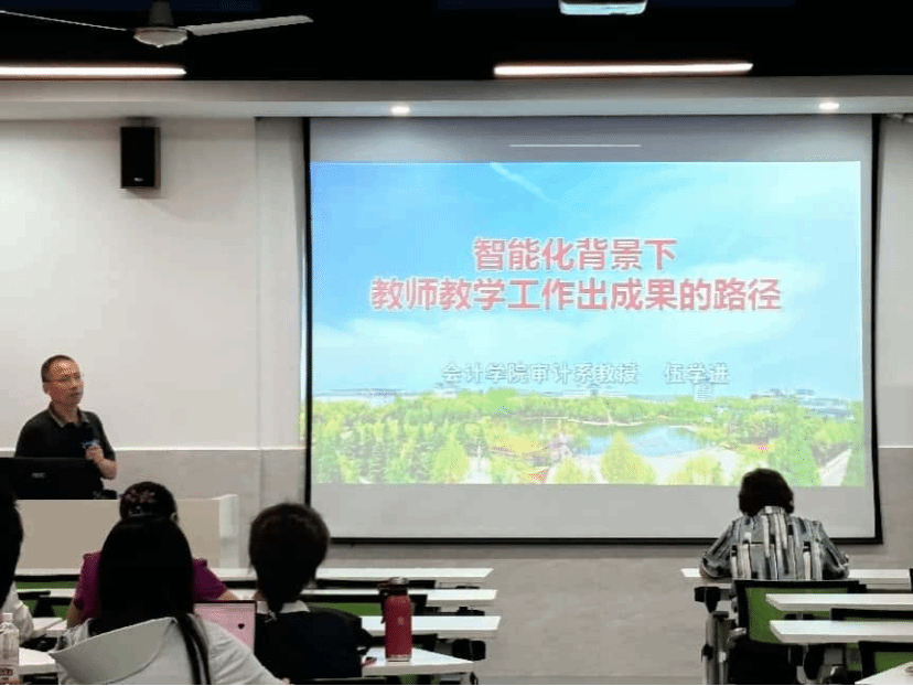 6月26日下午,会计学院在致用楼804成功召开了题为“智能化背景下教师教学工作出成果的路径”的学术讲座。讲座邀会计学院伍学进教授为主讲人,主持人为会计系主任黄婉霞,会计学院副院长周谦、会计系全体教师出席了讲座。