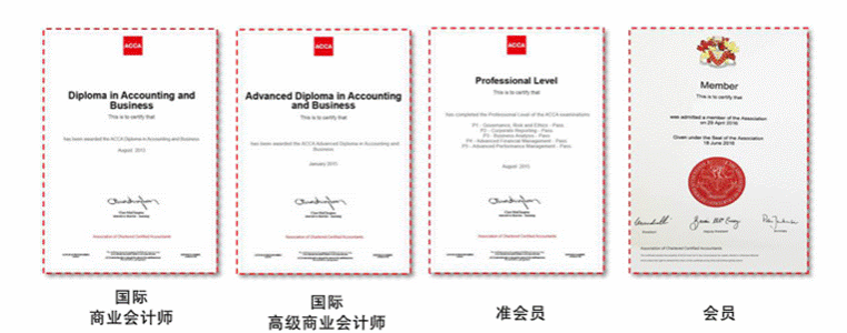 图:ACCA各阶段证书示例