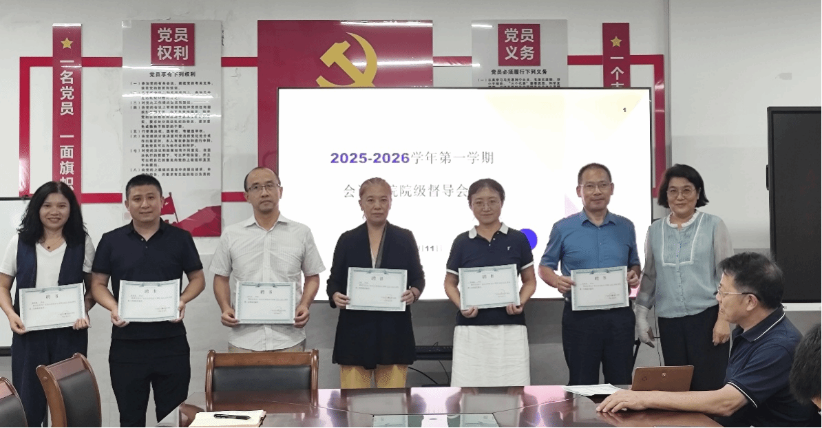 会议伊始,马丽莹院长宣布了本学期院级督导人员调整情况,并对上一阶段督导工作表示充分肯定。她强调,教学督导是保障课堂教学质量、推动教学改革的重要力量,希望各位督导继续发挥监督、指导、服务的作用,促进学院教学水平持续提升。随后,教学副院长周谦就本学期督导巡课、听评课等工作提出具体要求和安排,她指出,督导应重点关注课堂教学内容、教学方法、课堂互动及学生学习状态,做到及时反馈、有效沟通,帮助教师不断提升教学能力。会议最后,学院领导向院级督导成员颁发督导证书,鼓励大家以高度的责任感和专业精神履行督导职责,共同营造严谨务实、积极向上的教学氛围。