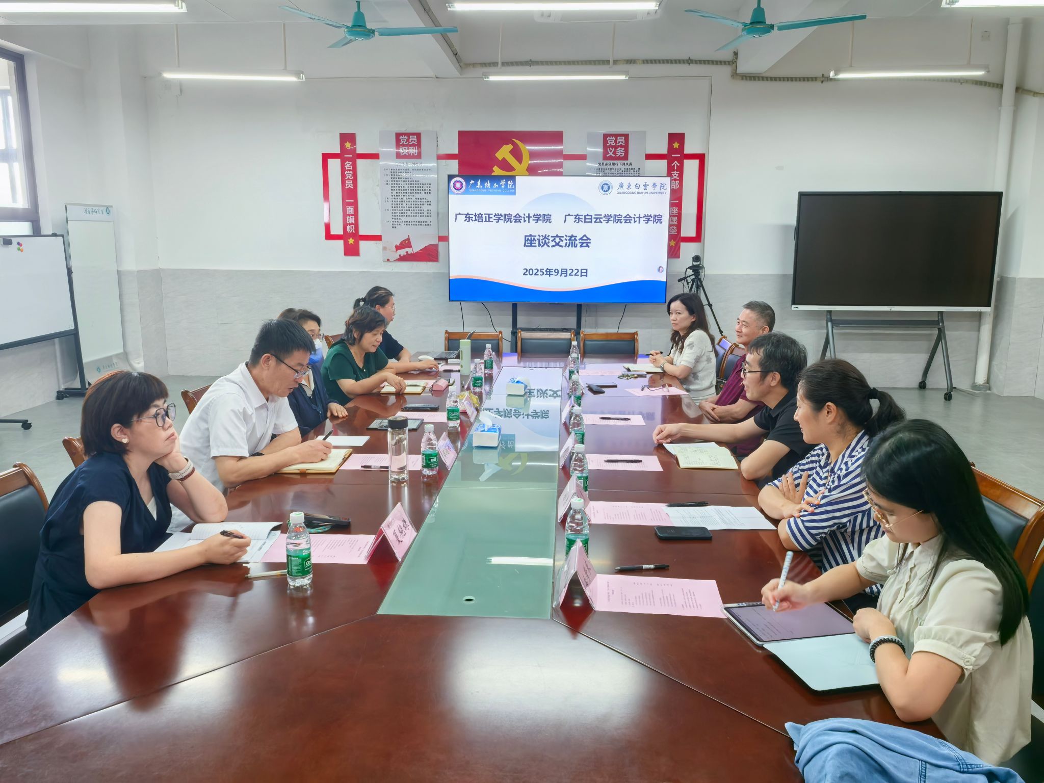 2025年9月22日下午,广东培正学院会计学院副院长谭洪益带队来访我校会计学院,双方在北校区致用楼1315会议室开展了座谈交流会。会议由我校会计学院院长马丽莹主持,会计学院副院长周谦、佟伯承和各专业负责人以及广东培正学院副院长谭洪益、学科带头人张晓峰、各系主任参加座谈交流会。会议围绕会计学科建设、人才培养、产教融合等议题展开深入研讨。