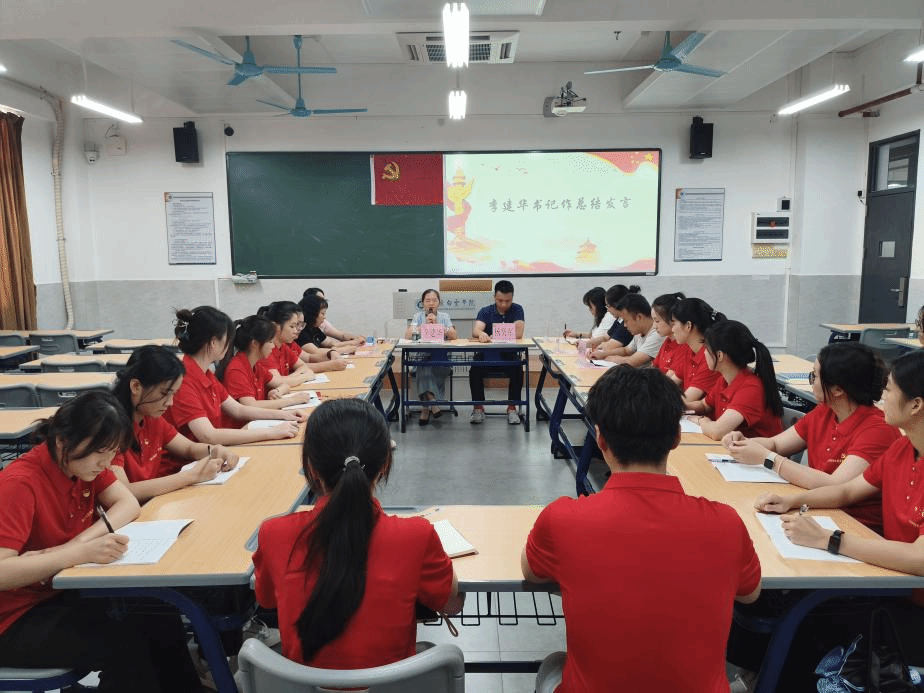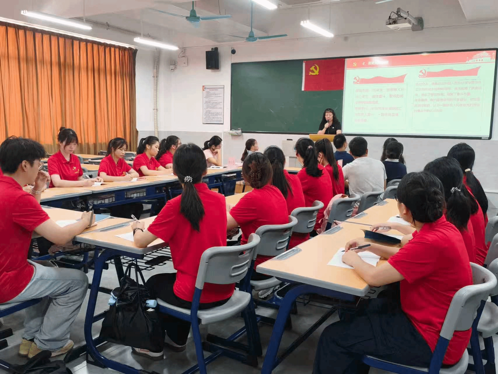 学生第一党支部书记钟小连老师带领全体党员深入学习习近平总书记在庆祝中华人民共和国成立76周年招待会上的重要讲话精神,通过系统宣讲与细致解读,引导党员们深刻领会讲话的精神内涵与时代要求。