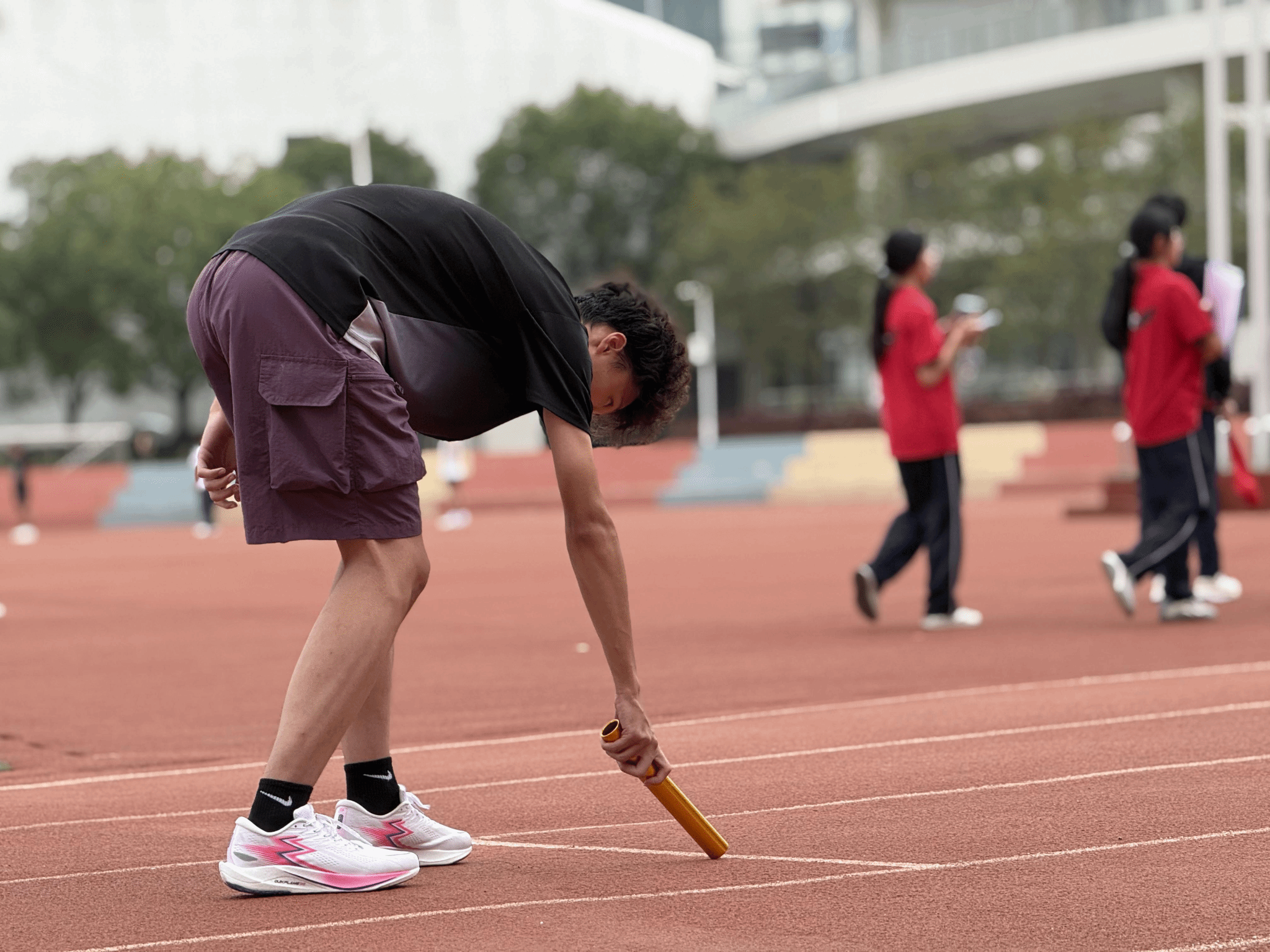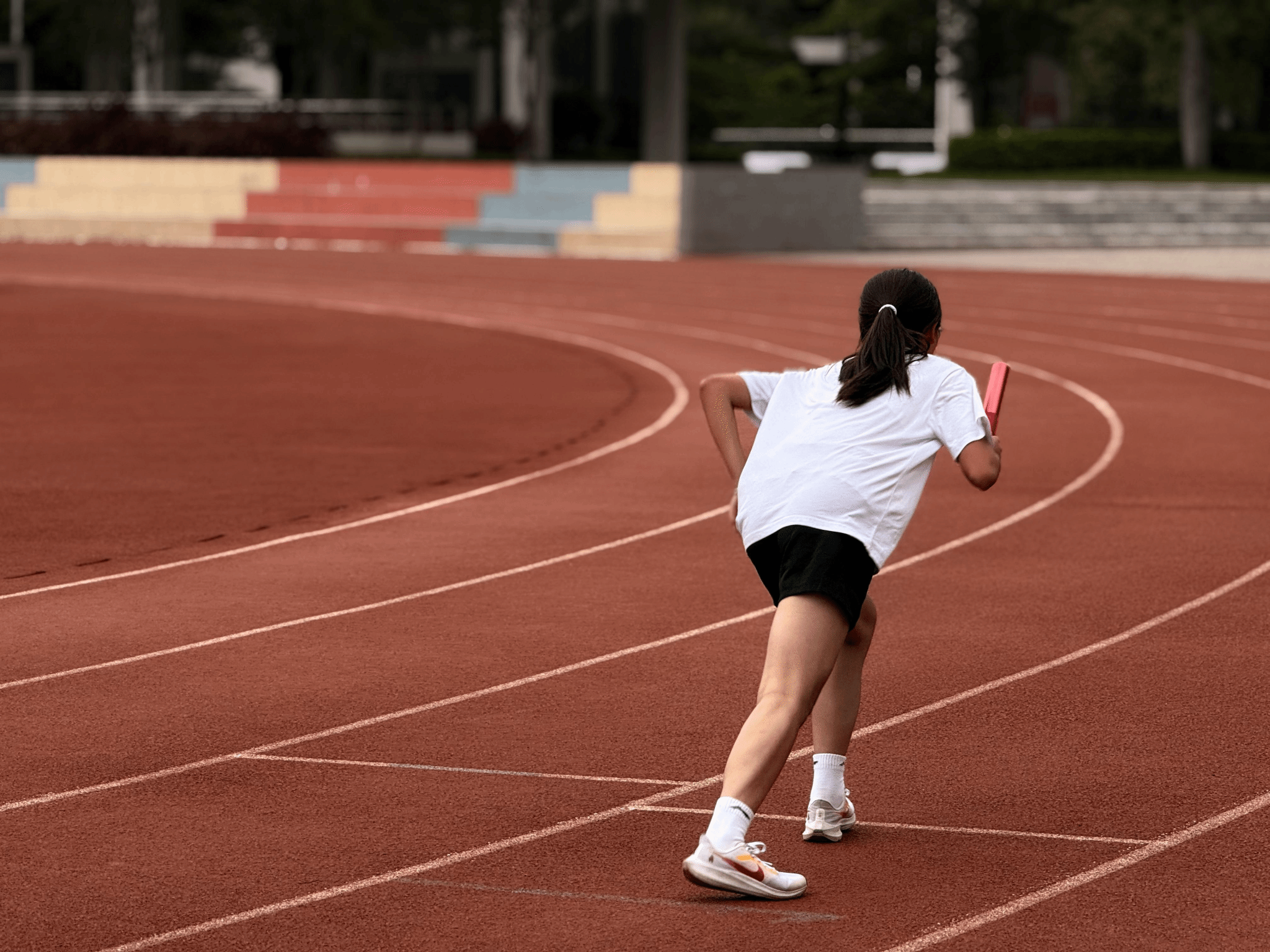 竞技不止有个人的闪耀,更有团队的并肩作战。4×100米接力赛更是将院运会推向高潮。队员默契配合,接力棒在队员间稳稳交接,传递的不仅是速度,更是信任与责任。第一棒奋力起跑,中间棒全力加速,最后一棒全力冲刺,他们身姿飒爽,步伐铿锵,默契的配合让团队力量大放异彩。