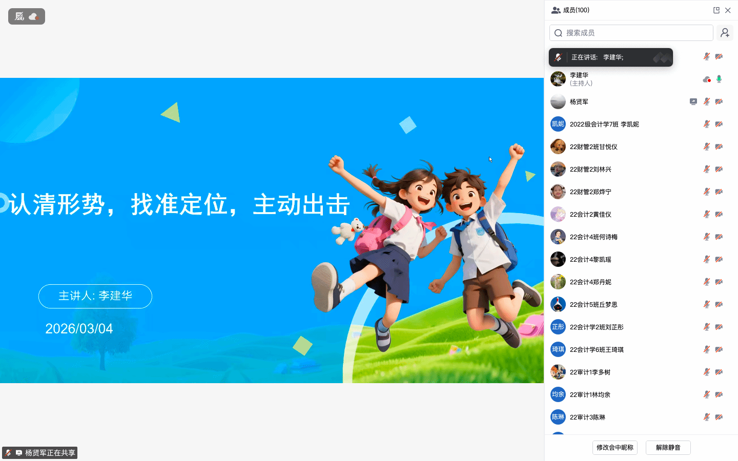 为帮助2026届毕业生准确认识当前就业形势,树立正确的就业观,提升求职竞争力,3月4日晚上,会计学院通过腾讯会议举行了“就业第一课”主题教育活动。本次活动由学院党委书记李建华主讲,为即将踏入求职征程的2026届毕业生们指点迷津、加油鼓劲。活动由学院党委副书记杨贤军主持,学院全体辅导员及2026届毕业生参加了此次活动。