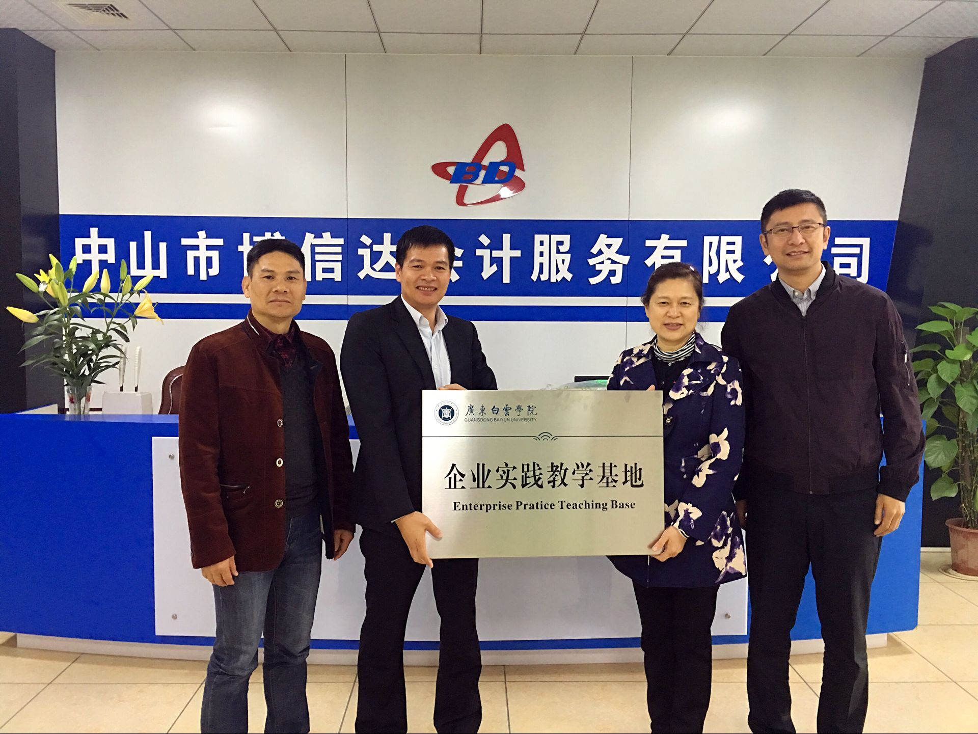 3月9日会计学院与中山市博信达会计服务有限公司在校企合作上更进一步,正式挂牌。参加今天挂牌仪式的有:会计学院书记陈理玫、办公室主任于昊、职业导师李亚强,企业代表:中山市博信达会计服务有限公司总经理苏照清,人事和行政经理高银凤,企业对学校老师的到来表示欢迎和感谢!